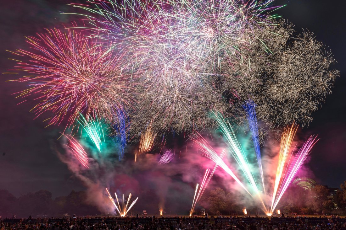 臨場感のある花火を、広々とした大芝生広場で見ることができますよ。