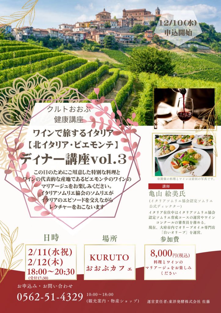 2026.2月健康講座のご案内  ワインで旅するイタリア【北イタリア・ピエモンテ】ディナー講座
